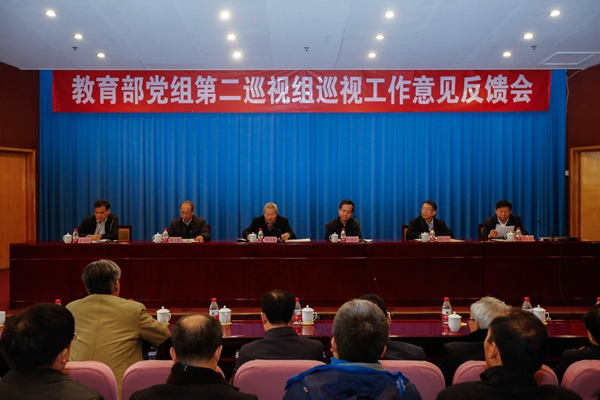 本网讯 根据教育部巡视工作领导小组的部署,1月5日下午,教育部党组第二巡视组组长朱玉泉,副组长陶文沂、孙广平向学校党委书记徐孝民、校长杨仁树和领导班子成员反馈巡视情况。随后,朱玉泉代表巡视组向学校干部师生进行了大会反馈,教育部巡视工作办公室副主任牛燕冰受教育部党组委托对整改工作提出了具体要求。徐孝民作表态发言,杨仁树主持会议。