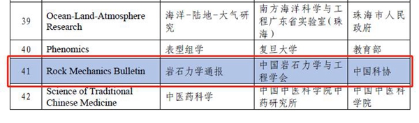 Rock Mechanics Bulletin(岩石力学通报)国际期刊入选2022年度中国科技期刊卓越行动计划高起点新刊项目