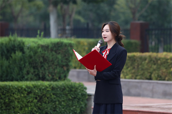 学生代表文法学院2021级行政管理专业本科生张熙敏做国旗下的演讲。作为青年学子,我们应该牢记党的教诲,坚定不移地听党话、跟党走,做社会主义核心价值观的坚定信仰者,积极传播者,模范践行者,向英雄学习,向前辈学习,向榜样学习,争做堪当民族复兴重任的时代新人,在实现中华民族伟大复兴的时代洪流中踔厉奋发,勇毅前进。