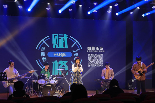 我校“赋格”乐队带来歌曲《小情歌》,拉开了总决赛的序幕。