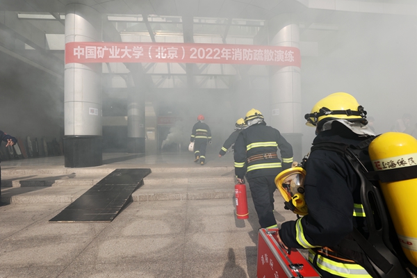 消防疏散演练地点为学十公寓楼,参演人员为学十公寓楼四至七层学生。中午12点30分,一阵“火灾警报”响起,消防疏散演练现场总指挥赵诚发令“中国矿业大学(北京)学十公寓楼消防疏散演练开始”,近1000名学生在保安员和志愿者的指引下,掩住口鼻,低姿快速有序撤离“火场”,疏散至篮球场,整个过程用时7分08秒,达到了演练预案预期效果。