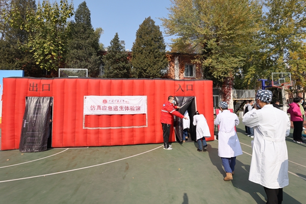 消防疏散演练结束后,学院路校区部分学生、审计处、网络与信息中心、校医院、餐饮中心、物业中心、交流中心、煤炭国重实验室等部门师生员工等近800人在篮球场参加了形式多样的灭火、逃生、救援技能培训。参加培训师生人手一次实际操作电子模拟灭火器灭火,亲身体验烟雾帐篷逃生,部分师生还学习了心肺复苏、火场逃生面罩使用、绳结逃生方法及海姆立克急救法,做到了将消防灭火技能、逃生技能、救援技能落到实处。师生在体验学习后,纷纷表示此次培训印象深刻、效果很好,对灭火器的正确使用和应急逃生技能有了更深的认识。
