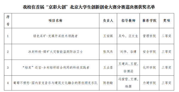 此次大赛的举办,进一步浓厚了我校创新创业氛围,为矿大青年学子创新创业、追求梦想、实现价值搭建精彩舞台。下一步,学校将依托众创空间等场地,继续搭建创新创业服务平台,引导更广泛的社会资源支持我校大学生创新创业,促进创业项目落地转化,强化创业带动就业倍增效应,服务首都经济高质量发展,努力形成矿大毕业生更高质量创业就业的新局面。