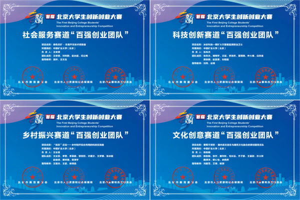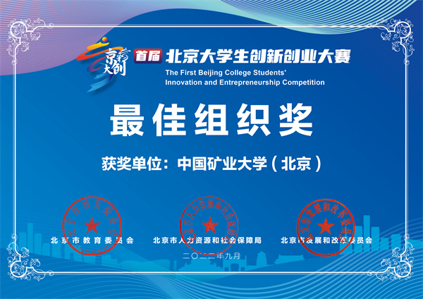 本网讯 近日,由北京市教育委员会、北京市人力资源和社会保障局、北京市发展和改革委员会联合举办的首届“京彩大创”北京大学生创新创业大赛总决赛暨颁奖典礼在中关村国家自主创新示范区展示中心隆重举行。我校《绿色采矿-充填开采技术领跑者》等4支团队获得“百强创业团队”称号,在分赛道决赛中获评二等奖团队1支,三等奖团队3支,学校荣获首届北京大学生创新创业大赛“最佳组织奖”。