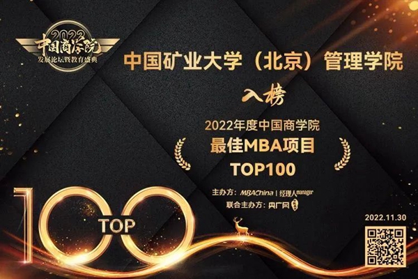 1.中国矿业大学(北京)管理学院 荣获2022年度中国商学院“最佳MBA项目TOP100”(第59位);