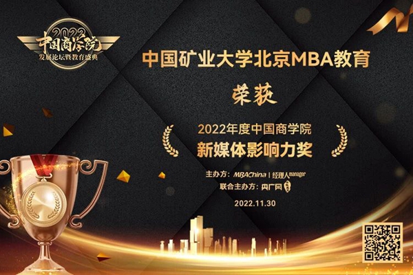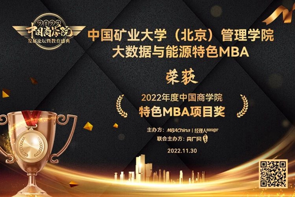 2.中国矿业大学(北京)管理学院大数据与能源特色MBA项目 荣获2022年度中国商学院“特色MBA项目奖”;