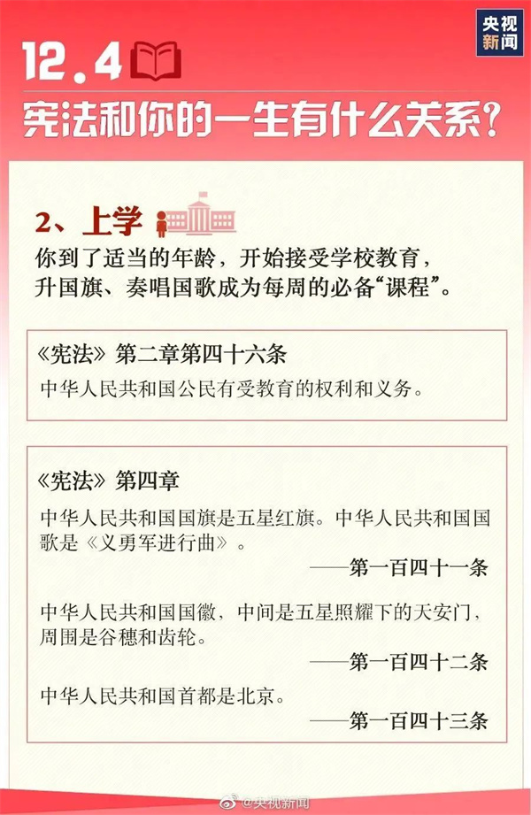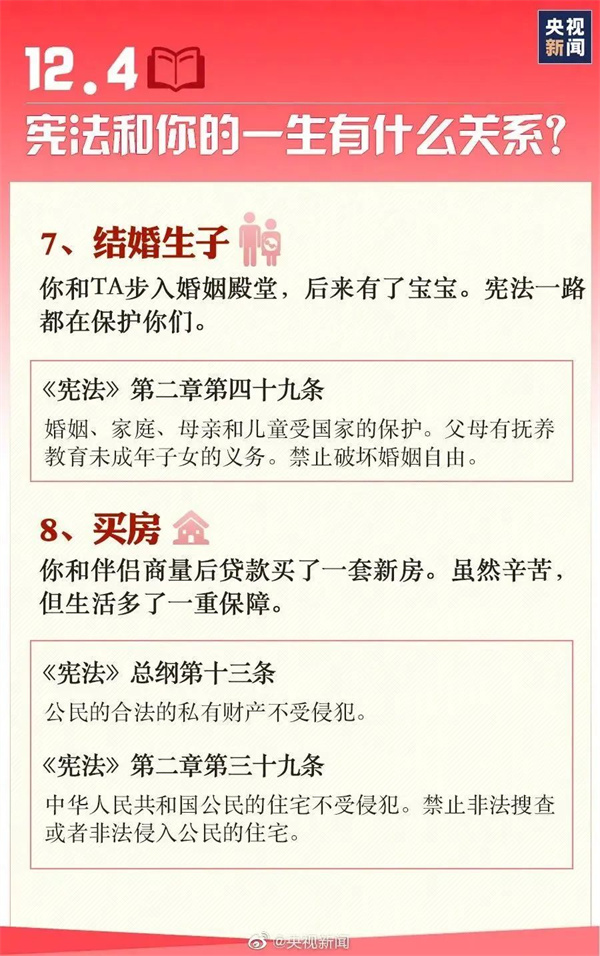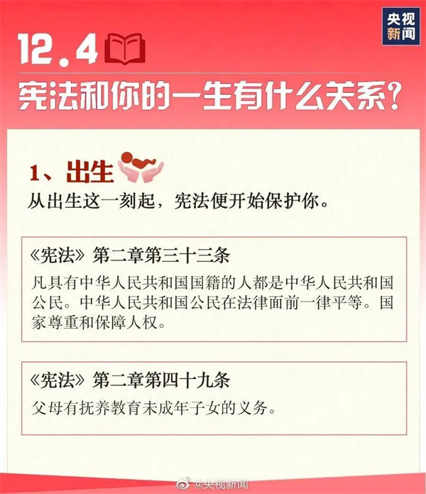 从出生,到老去,从入学、工作、结婚到退休,在人生的每一个重要时刻,宪法都默默地保护和陪伴我们。可以说,你我的一生都与宪法息息相关。