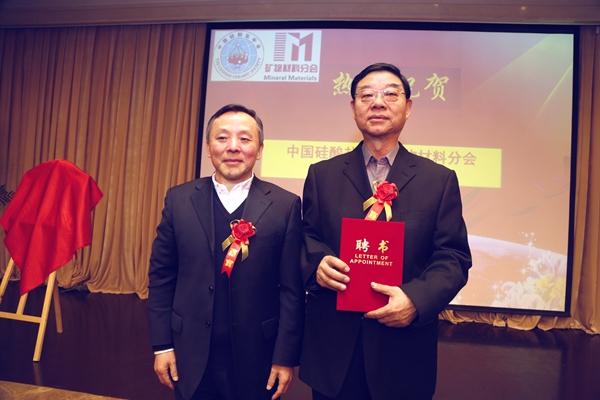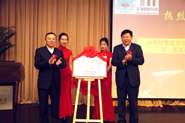 谭抚宣读了《关于成立中国硅酸盐学会矿物材料的批复》以及中国硅酸盐学会矿物材料分会第一届理事会组成。中国工程院孙传尧院士担任矿物材料分会第一届名誉理事长。中国矿业大学(北京)郑水林教授担任矿物材料分会理事长、中南大学杨华明教授、东北大学韩跃新教授、北京大学传秀云教授、清华大学康飞宇教授、河北工业大学梁金生教授、北京航空航天大学沈志刚教授担任矿物材料分会副理事长,中国矿业大学(北京)孙志明博士担任秘书长。矿物材料分会依托单位为中国矿业大学(北京)。