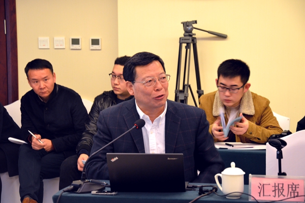 何满潮院士代表科研团队向与会专家汇报了该项目的科研成果。他的汇报包括问题的提出、“薄煤层无煤柱110工法”理论、技术、工程设计、配套的装备、现场应用六部分。汇报结束后,播放了110工法在延安市禾草沟二号煤矿应用的实况录像,平煤集团康国锋教授级高工代表现场考察专家组汇报了现场考察测试报告。