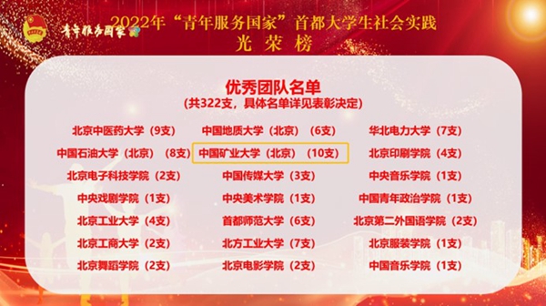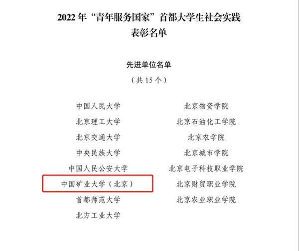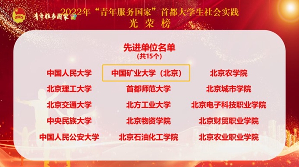 我校获评“2022年‘青年服务国家’首都大学生社会实践先进单位”