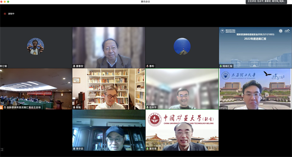 本网讯 1月13日,学校在西郊宾馆以线下线上相结合的方式组织召开了由鞠杨教授主持承担的国家自然科学基金创新研究群体“煤炭资源绿色智能安全开采”项目(编号52121003)2022年度进展汇报会。国家自然科学基金委员会工程与材料科学部工程一处王西勃主任,中国工程院院士、中国科学院武汉岩土力学所杨春和,大连理工大学教授唐春安,中国石油大学(北京)教授陈勉,中南大学教授李夕兵,太原师范学院教授梁卫国,西安科技大学教授伍永平等专家对群体一年来的工作进展与成果进行了论证与研讨。会上,群体负责人鞠杨教授与骨干彭苏萍院士、葛世荣院士、王家臣教授、周宏伟教授、王凯教授及群体相关研究人员对研究情况进行汇报。科学技术研究院院长赵毅鑫教授等参加会议。
