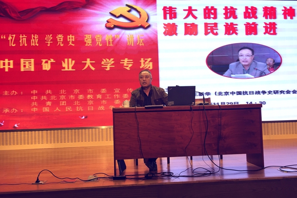 本网讯 11月29日下午,由中共北京市委宣传部、中共北京市委教育工作委员会、共青团北京市委员会和中国人民抗日战争纪念馆联合主办的“忆抗战 学党史 强党性”党课活动——中国矿业大学(北京)专场讲坛,在中国人民抗日战争纪念馆隆重举行,北京中国抗日战争史研究会会长王新华同志作本场报告。我校组织教师代表2人、学生骨干9人、党员83人,共94人参加本次党课活动。