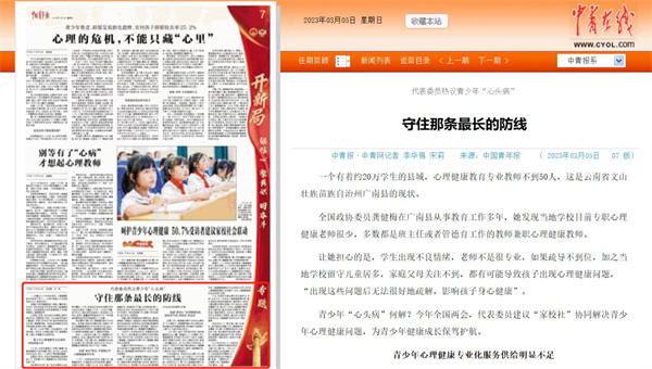 而我国针对青少年心理健康的服务工作也存在一些问题。民进中央调研发现,我国中小学生心理健康管理和诊疗体系缺乏协同,适合一线教师在实践中使用的心理健康教育教材缺乏,与心理相关的课程标准极少、辅导资料稀缺。