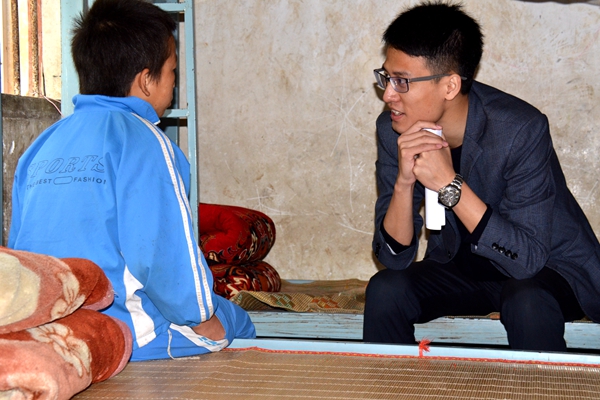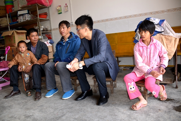 他发动研究生支教团入村开展社会观察,探索贫困村党支部与高校党支部“1+1”帮扶模式,积极参与永吉村整体建设规划,该项工作被《河池日报》报道。邀请学校扶贫工作调研团和教授专家赴都安调研,筹集发放慰问金近2万元;邀请上海教育机构开展德育教育培训;赴都安高中召开招生宣讲会,指导贫困考生填报志愿,2015年有2名都安籍考生以第一志愿成功考上矿大。