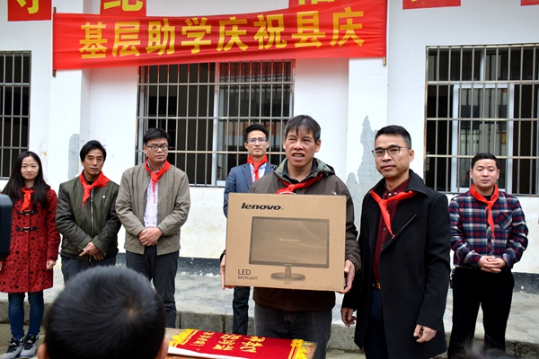 他主动挂点帮扶贫困村永吉村,为当地小学筹集资金近15万元,邀请企业捐赠3600本图书、电脑、打印机等物资,成立爱心图书馆。通过网络发起众筹,邀请亲朋好友“一对一”资助留守儿童18名,保障了孩子们上大学前的各项费用,还协助矿大工会遴选9名贫困家庭优秀高中生,资助他们实现大学梦。