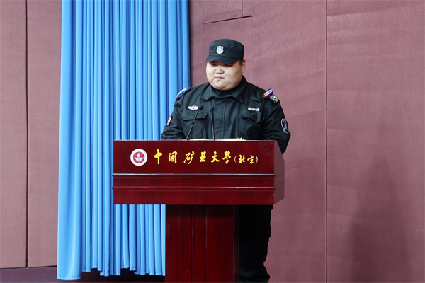 优秀保安员代表臧军宇、郭梵桥发言。他们表示,中国矿业大学(北京)是全体安保人员的第二个家,守护好学校的每一名师生、每一个角落、每一寸土地都是安保人员应尽的职责。2023年,全体安保人员将在学校的坚强领导下,继续扎实工作,不断提高自身综合素质,加强团结协作,发挥集体的功效,共同营造安全稳定文明的校园环境。