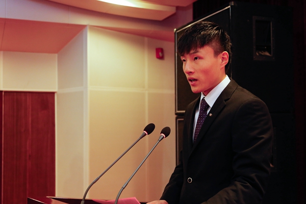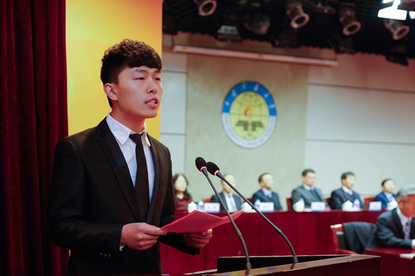 获奖学生代表、地测学院资源勘查工程专业2014级学生王凯同学发言