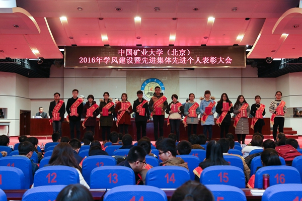 2015-2016学年度,学校以人才培养为根本任务,涌现出一大批团结奋进的先进集体和德才兼备的优秀个人,全校共有64名本科生获得国家奖学金,192人获得国家励志奖学金;10人获得董事会奖学金,10人获得孙越崎奖学金;784人获评研究生优秀学生,1993人获得优秀本科生奖学金;共评选出4个优良学风标兵班和13个优良学风班,18个优良学风标兵宿舍和72个优良学风宿舍。本学年,学校组织大学生参加国家及北京市各类学科竞赛22项,共有331人次,获得各级各类奖项达215项;在校本科生共发表学术论文201篇,获准专利17项。这些都集中体现了我校在学风建设上取得的突出成果和我校大学生奋发向上的精神风貌。