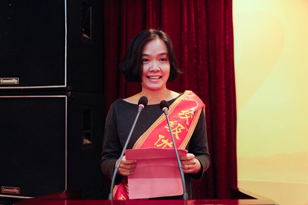 十佳辅导员代表史芳在发言中表示,八年的辅导员经历让其收获满满,懂得了“踏实工作,开拓创新;真情奉献,亦师亦友;埋头做事,抬头看路;勤于探讨,共同进步”的真谛。她将一如既往地扎实工作,真正成为学生的良师益友,做一名让领导放心、让学生满意的辅导员。