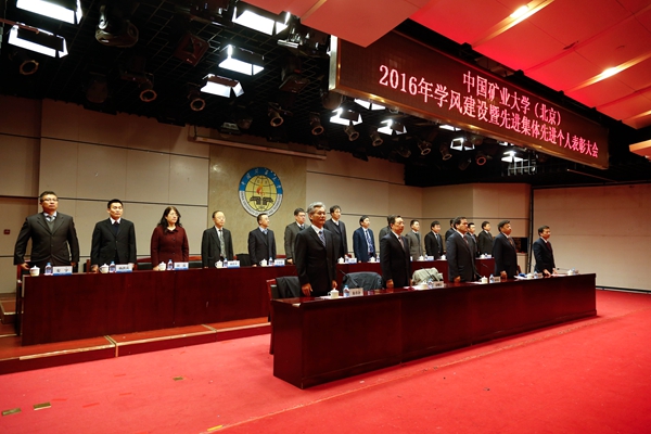 大会在庄严的国歌声中拉开帷幕。王忠强宣读了2015-2016学年度优良学风标兵班、优良学风班、优良学风标兵宿舍、优良学风宿舍、十佳辅导员、优秀辅导员、优秀班主任、孙越崎奖学金和研究生优秀学生获奖名单,姜耀东宣读了2015-2016学年度董事会奖学金、校级优秀本科生、国家励志奖学金、本科生国家奖学金获奖名单。