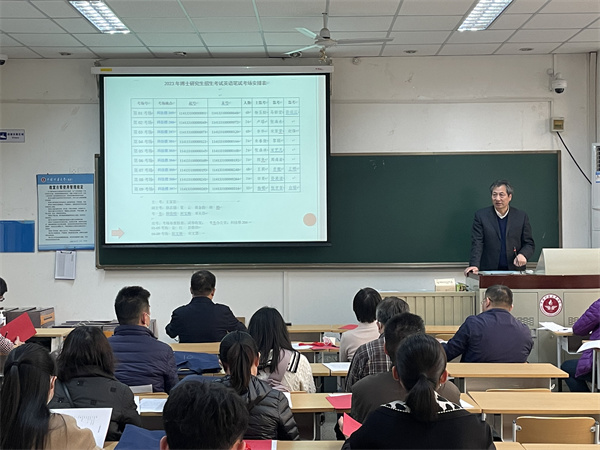 为确保本次考试顺利进行,研究生院于3月10日下午在科技楼103教室召开考务工作培训会议,副校长王家臣强调了博士研究生招生考试的安全保密问题,要求考务老师严格实施考务程序,严防严控考生作弊等违纪行为。研究生院常务副院长徐志强重点强调了考务培训工作的重要性和监考教师的责任意识。研究生招生办公室的老师对考试组织实施过程、考场布置等相关问题进行了说明讲解。研究生院全体工作人员、全体监考教师和考务工作人员共34人参加了本次培训会议。