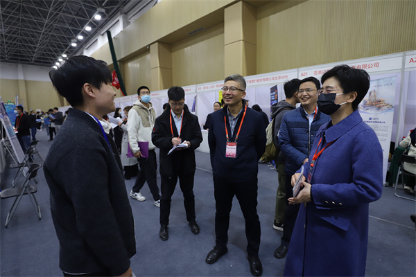 安宇深入到双选会现场,先后与河南能源化工集团有限公司、赤峰吉隆黄金矿业股份有限公司、内蒙古第九地质矿产勘查开发有限责任公司、北京简单科技有限公司、瓦房店轴承集团有限责任公司、温州芯壳科技有限公司、旭阳集团有限公司、济宁能源发展集团有限公司等多家用人单位招聘负责人亲切交流,对各用人单位到校参会表示热烈欢迎,对各用人单位对学校就业工作、人才培养的关心与支持表示感谢,并对用人单位选到合适的人才表达了祝愿。
