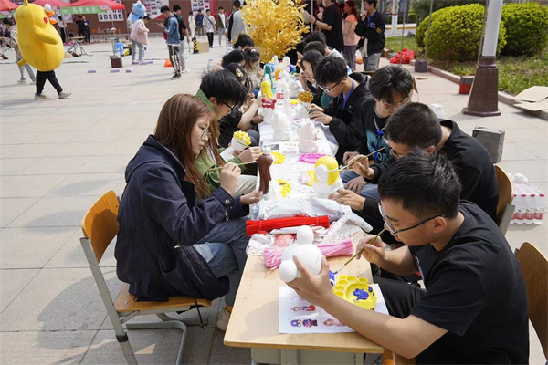 本网讯 为进一步丰富学生课余文化生活,加强沙河高教园区高校联盟各高校之间的文化交流建设,4月1日,由校团委主办、校学生会承办、各学院学生会和校级学生组织协办的以“2023青春游园会,奋楫再出发”为主题的游园会在沙河校区南广场举办,共1500余名师生参加了本次游园会。