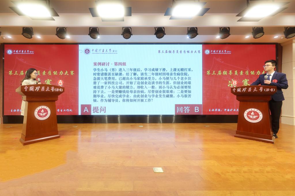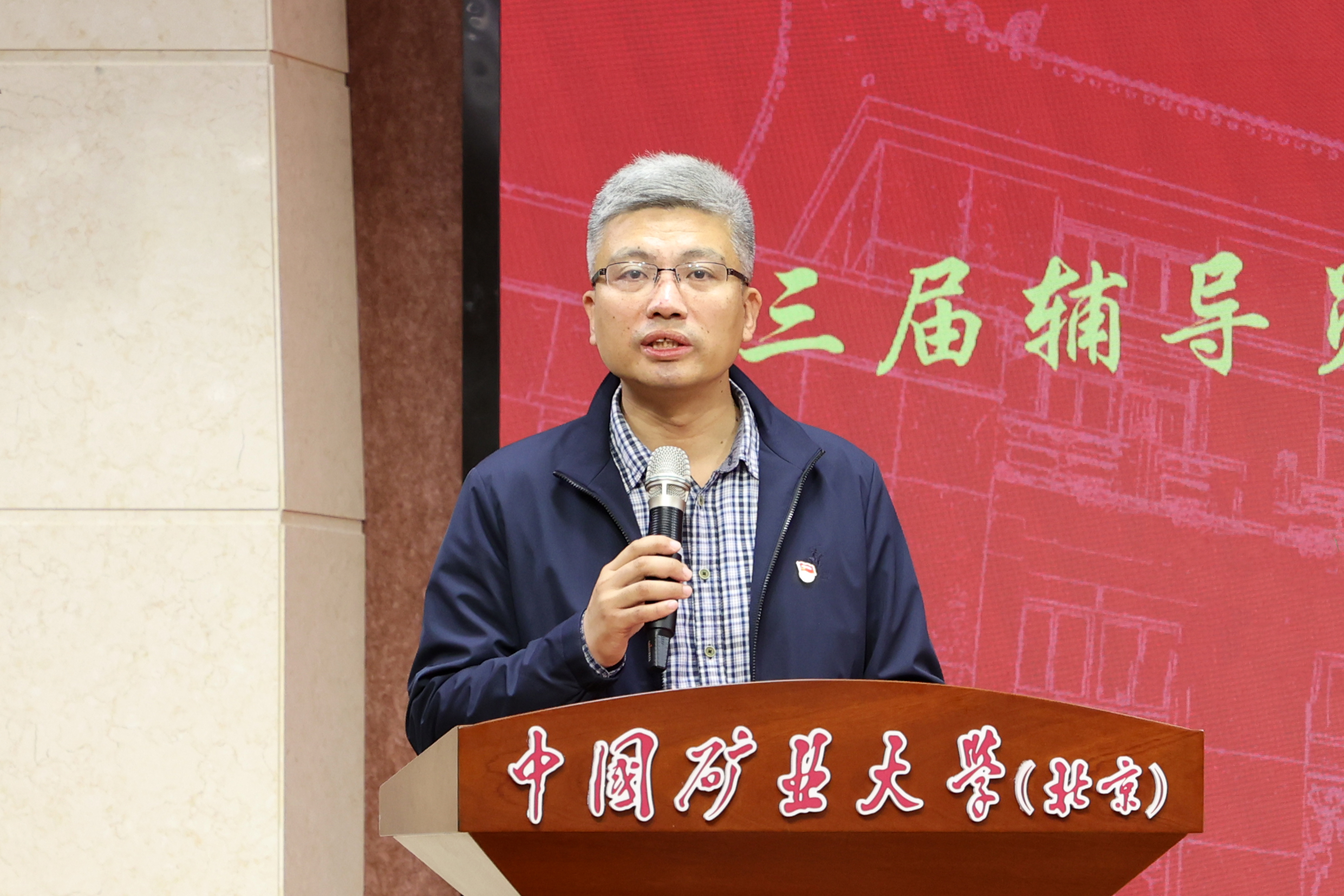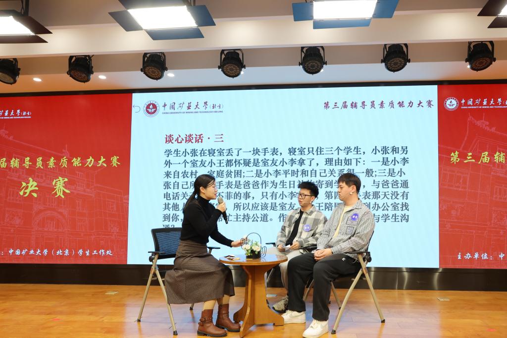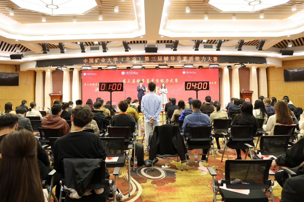本网讯 4月11日上午,中国矿业大学(北京)第三届辅导员素质能力大赛决赛在学院路校区福中苑报告厅举行。校党委副书记安宇出席比赛并讲话,党委宣传部、校团委、学生工作处、网信中心等相关负责同志,各学院分管学生工作书记、副书记及专兼职辅导员共计120余人观看比赛。决赛邀请往届全国和北京市辅导员素质能力大赛的获奖辅导员首都师范大学王洵、北京邮电大学高龄、北京师范大学安利利和北京石油化工学院王鑫担任评委。