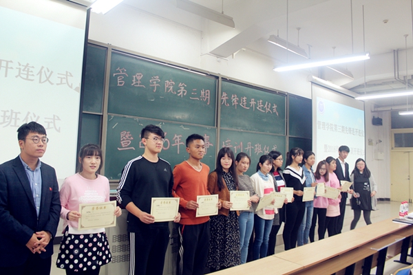 自2015年10月起,管理学院党委、团委联合发起了“优秀学生先锋连”的实践培养活动,旨在以“党建带团建”的工作思路下,创新优秀青年团员锻炼模式,进一步规范党员发展流程。为学生提供实践锻炼的舞台,在思想学习和实践行动中,真真切切地将最优秀的学生干部吸纳进党组织,引领更多的学生群体向优秀目标看齐、努力奋斗。在学院内形成一股向上向善、创先争优的活泼局面。
