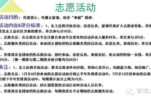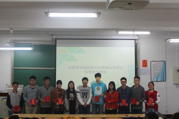 今年10月18日,管理学院第三期“先锋连”开连仪式暨2016年干事培训开班仪式与民族楼B114胜利召开。会上,管理学院团委总结指出,先锋连活动,是认真领会党中央关于开展社会主义核心价值观、“两学一做”主题教育,团中央关于开展“四进四信”系列教育活动的精神,在我院学生干部中开展的将实践与思想教育结合为一体的教育培养活动。通过参与志愿服务、开展党团思想政治学习、身体力行参与体育活动,在行动上严格要求自己,向上向善,引导学院同学们向着做一名优秀团员、一名合格的共产党员而不断奋斗。