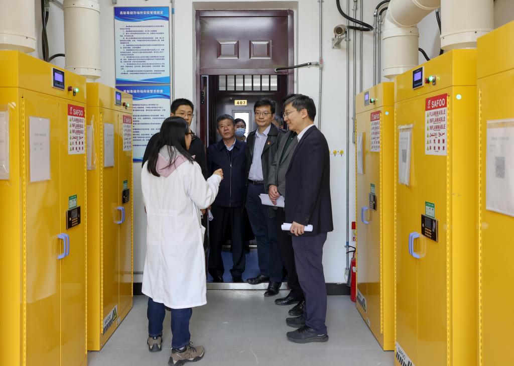 检查组先后来到综合楼微型消防站、丰园食堂、学十宿舍楼、校医院、逸夫实验楼、危化品库等重点部位,对消防设施完备情况、室内外消防通道畅通情况、食堂清洗消毒情况、宿舍安全情况、防疫及生活物资储备情况、校内交通情况、易制爆易制毒化学品管理等情况进行全面检查并与现场负责人进行深入交流。