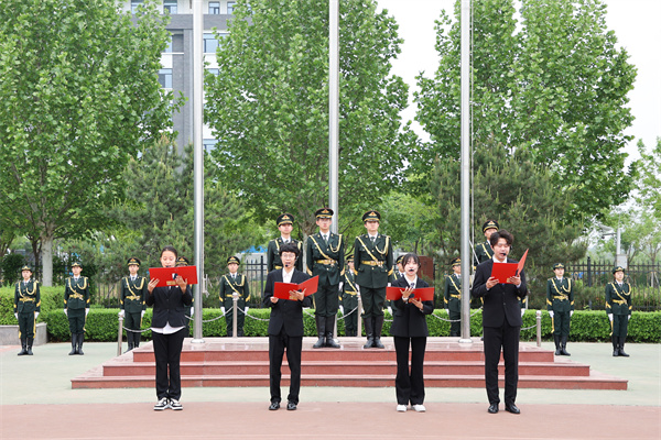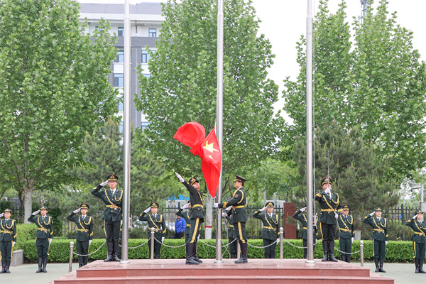 本网讯 五四运动以全民族的力量高举起爱国主义的伟大旗帜,孕育了以爱国、进步、民主、科学为主要内容的伟大五四精神。为弘扬以爱国主义精神为核心的五四精神,深入开展学习贯彻习近平新时代中国特色社会主义思想主题教育,培育青年大学生爱党爱国情怀,5月4日,“昂扬青春心向党 阔步奋进新征程”五四青年节主题升国旗仪式在中国矿业大学(北京)沙河校区举行。