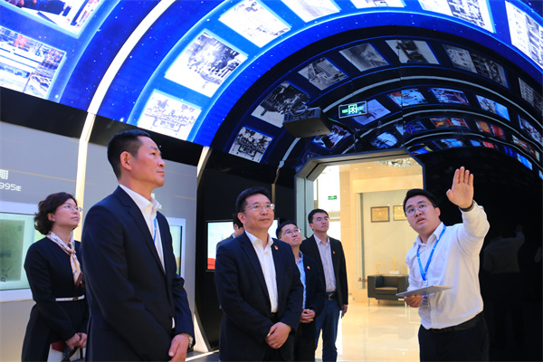 在人力资源部经理姜斌带领下,刘波一行参观了中建二局展厅。