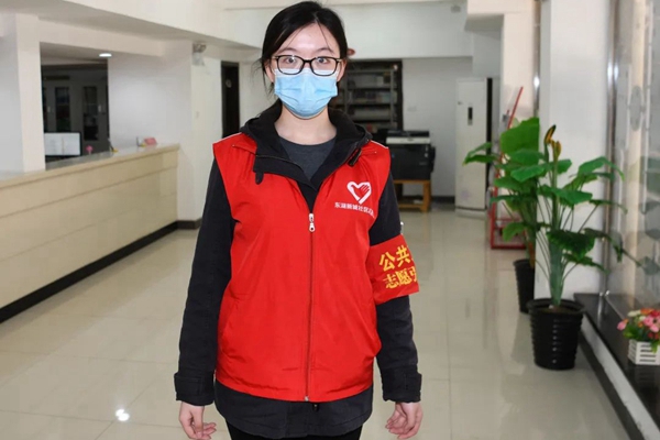 武汉东湖新城社区大学生志愿者谢小玉(2020年3月10日摄)