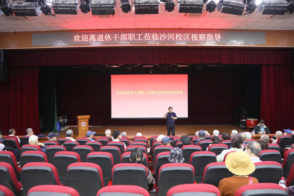 安宇对离退休教职工到沙河校区参观指导表示热烈欢迎,对老同志们为学校建设做出的卓越贡献以及退休后对学校的持续关注表示感谢,并向老同志们汇报了学校的发展现状。希望大家在沙河校区多看看、多走走,为学校建设提出宝贵的意见。