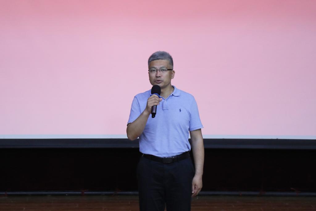 校长助理乔红兵向离退休教职工介绍了新校区的修缮改造历程、施工进度、校园规划等情况。