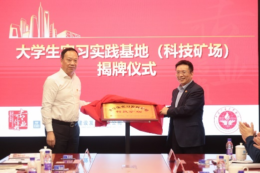 刘波分别为周予启和薛连建颁发校外学术导师和职业发展导师聘书,并举行了大学生实习实践就业基地“科技矿场”揭牌仪式。