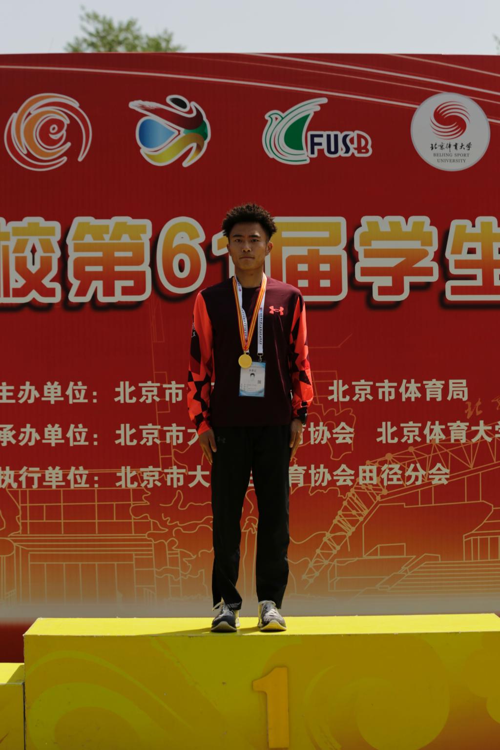 本届运动会是近三年以来参赛报名人数最多的一届,来自首都72所高校的1574名运动员在5个组别115个田径项目中展开激烈角逐。我校由赵伟科老师担任教练带领28名运动员参加了甲B、甲C、乙组3个组别22个项目的赛项,共获得3金1银1铜好成绩。其中,蓝捷怀以绝对优势获得甲C组男子10000米和5000米比赛冠军;吕斯晨获得乙组男子3000米障碍冠军,10000米第七名;徐懿娴获得乙组女子10000第二名、5000米第三名;张弛获得乙组女子100米第六名;方堃获得乙组男子3000米障碍第七名;杨东鑫获得乙组男子10000米第八名;王颖颖获得乙组女子10000米第八名;程子堃、张晟博、吕斯晨、葛鸣明获得乙组4x400第六名。