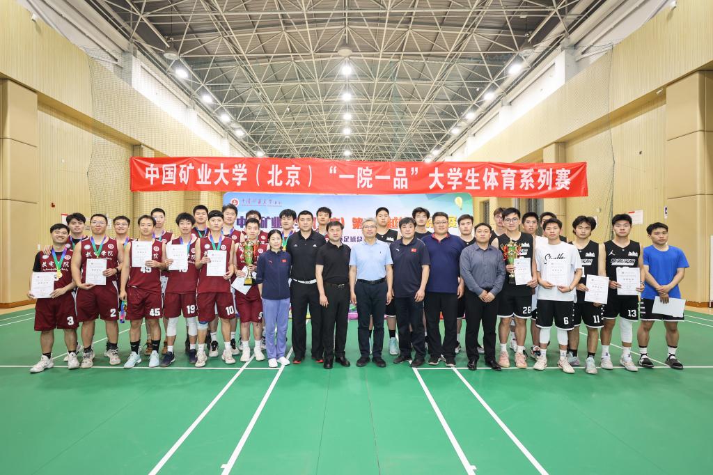 篮球联赛由能源学院承办,16支队伍200余名运动员参赛,经过20场比赛的激烈角逐,学院路机电学院与沙河地测学院上演终极战,由吴岩老师担任裁判。总决赛由能源学院党委书记高来举开球。随着裁判员一声哨响,冠军争夺战正式打响,三分线外,手起足落,弧线完美,战鼓擂起,你来我往,比分最终定格在34:16,机电学院赢得总决赛冠军,能源学院获得最佳组织奖、机电学院徐天昊获得篮球总决赛最佳球员荣誉称号。