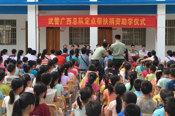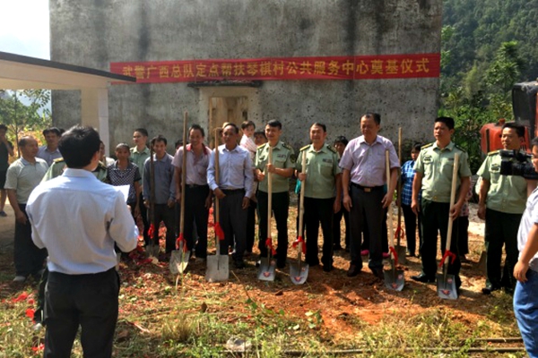除了我校的大力支持外,孙铭晗还联系到了武警广西总队定点帮扶琴棋村。2016年7月,武警广西总队副司令员、副政委带领部队基建、教育、医疗、农业等各部门负责人到琴棋村召开定点扶贫现场会。目前已经落实的项目有村公共服务中心建设项目,投入资金90万元;移动手机信号基站建设,投入资金40万元;总队官兵“一对一”帮扶琴棋村35名贫困户家的中、小学生,每人每学期助学金600元。2016年9月,武警广西总队医院的专家到琴棋村开展义诊活动。10个科室的20多名专家为75名村民诊治身体,并提供B超、心电图等医疗器械的检查。针对村民高发的痛风、高血压、心脏病儿童感冒等病症赠送6000多元的药物。