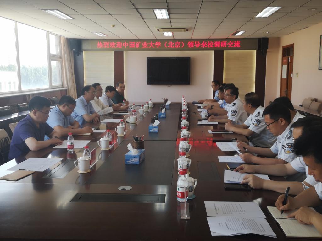 本网讯 6月5日,校长葛世荣带队赴中国人民警察大学走访调研,中国人民警察大学校长马金旗、副校长张平、吴立志,我校副校长崔希民等出席调研交流会议。双方就校际合作、人才培养、科研创新、学科建设等工作进行了深入交流。