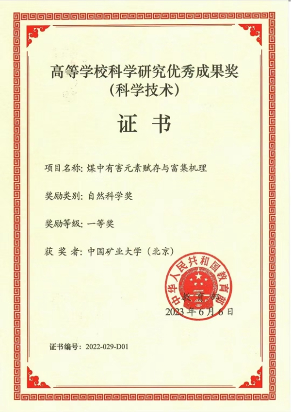 本网讯  近日,教育部颁发了2021、2022年度教育部高等学校科学研究优秀成果奖(科学技术)获奖证书。中国矿业大学(北京)共有9项科技成果获奖,涵盖自然科学奖、技术发明奖、科技进步奖三大奖种。其中,一等奖4项,二等奖5项。