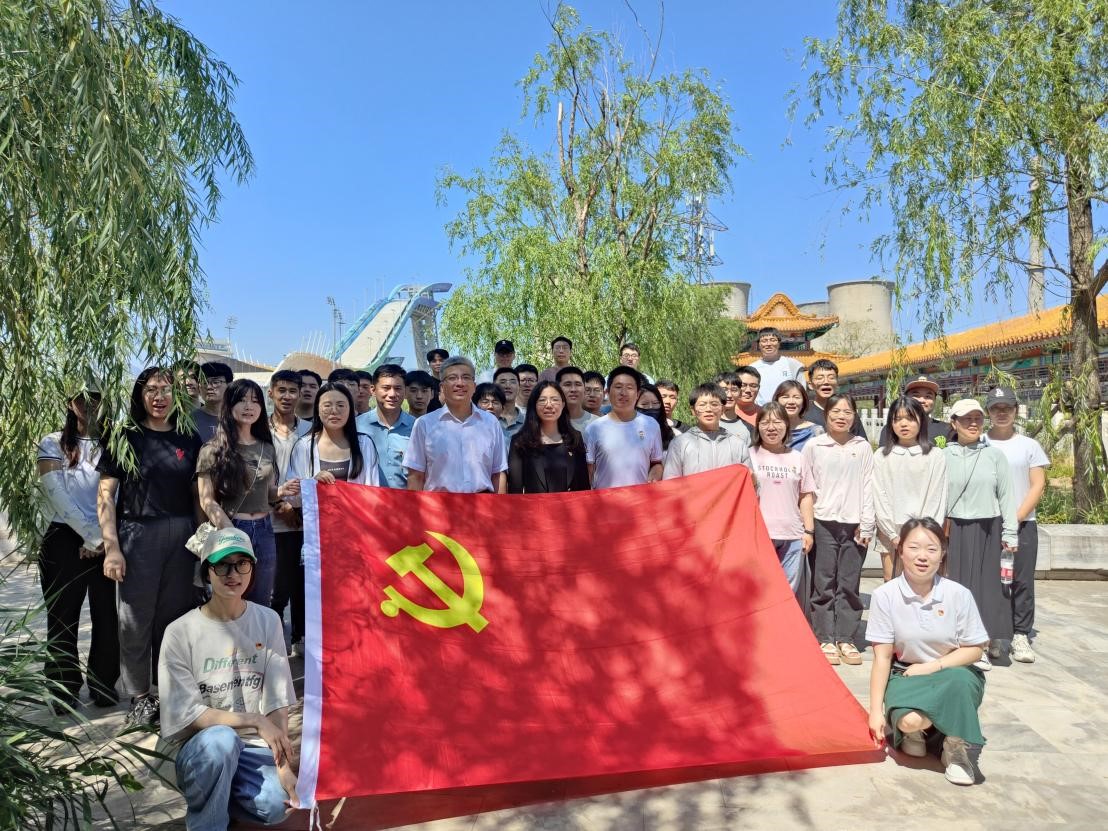教师、学生党员以及企业党支部成员还共同参观了群明湖和大跳台。群明湖是原首钢工业系统的冷却晾水池,现如今,这里成为首钢节能环保与园林绿化有机融合的一处胜景。沿着群明湖长廊,可见正中横梁上所绘的“邓小平同志光辉历程连环画”,沿途学习了邓小平同志从少年投身革命到改革开放的光辉历程。在冬奥会地标建筑大跳台,感受着大跳台与冷却塔以及石景山错落有致、远近相互辉映,大家被其优美流线与恢弘气势所震撼,在不经意中更加深刻领悟了北京冬奥会和冬残奥会绿色、共享、开放、廉洁的理念。