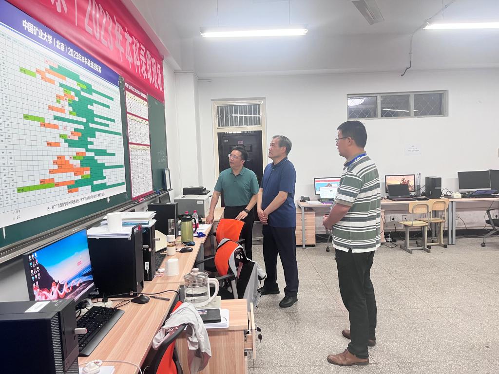 本网讯 近日,校党委书记徐孝民,校长葛世荣,校党委副书记、纪委书记董晞,副校长刘波到我校本科招生录取现场检查指导工作,听取招生工作进展汇报,详细了解了已开展招生录取省份的投档录取情况,看望慰问招生录取工作人员。学校有关部门负责人陪同检查。