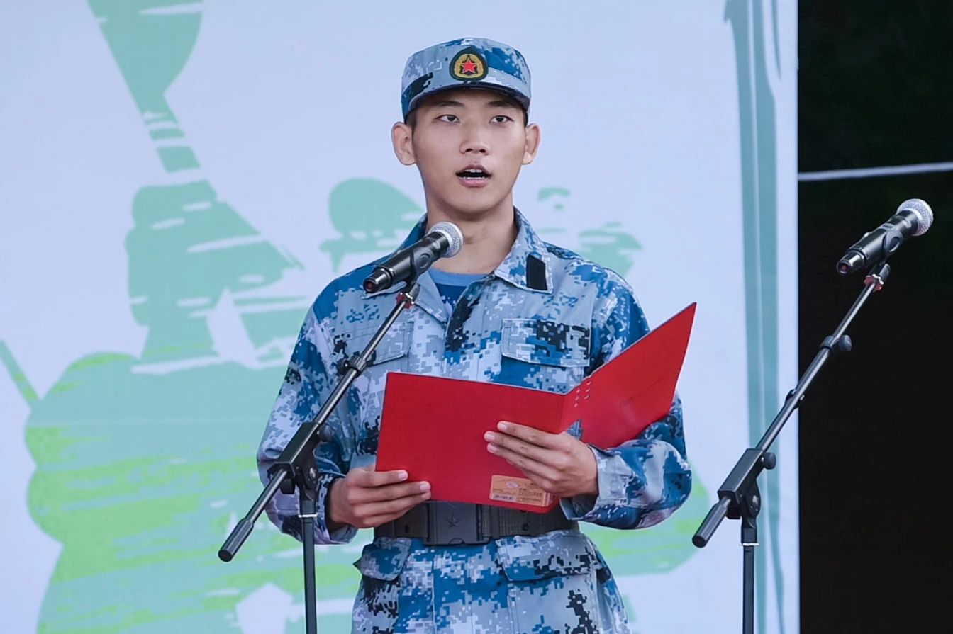 军训教官代表刘金刚在会上发言,他代表全体军训教官表示,在思想上高度重视,在训练中科学组训、尽职尽责,以饱满的军人形象做好表率,以过硬的军事本领提供指导,让参训同学有所收获、有所成长。