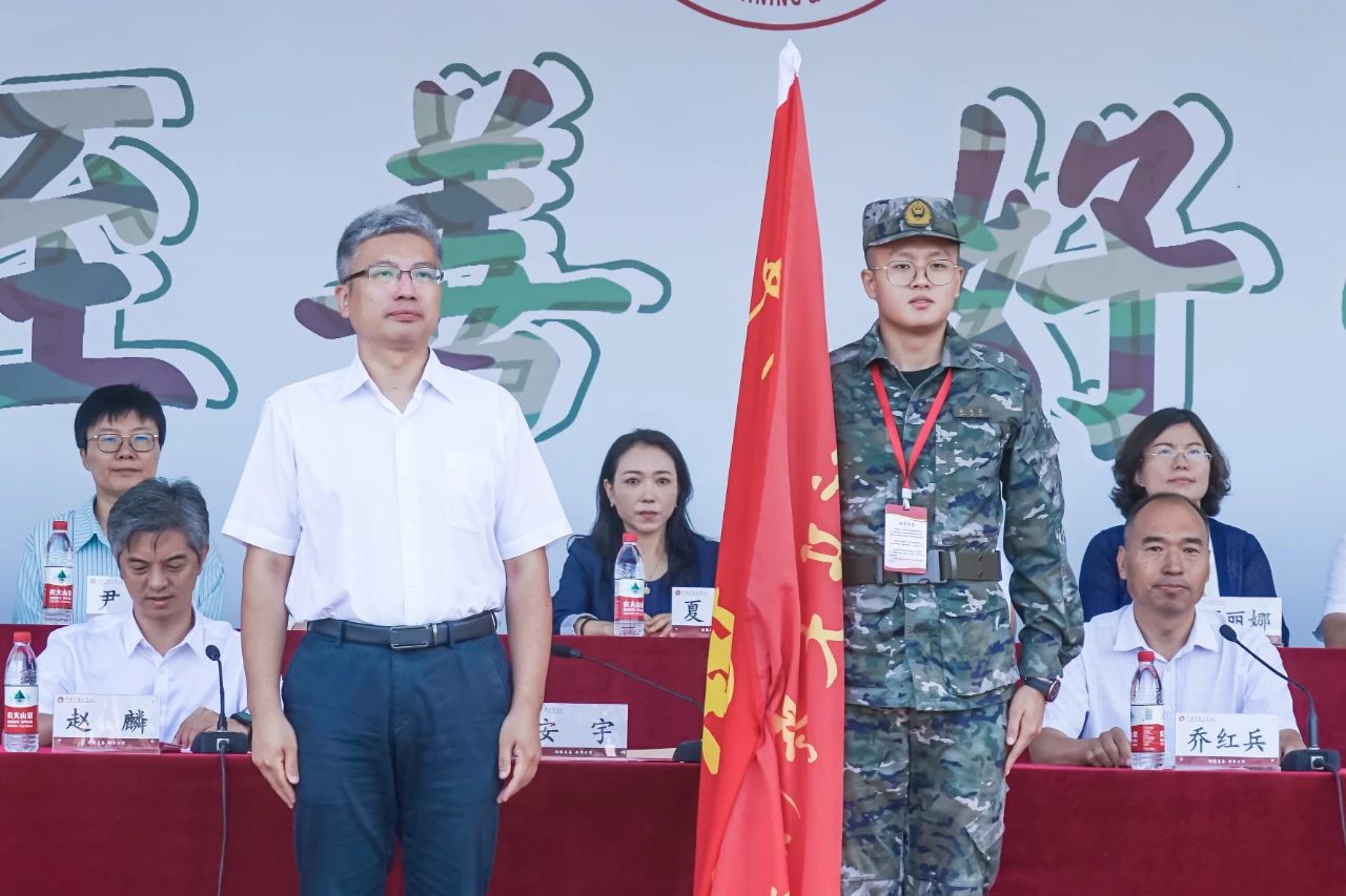 本网讯 8月21日上午,2023年学生军训开训仪式在沙河校区运动场举行。校党委副书记安宇出席仪式并讲话,校长助理乔红兵,军训团团长张兆言,校党委武装部部长、军训团政委赵麟,党委宣传部、保卫处、教务处、总务处、沙河校区管理委员会、校医院等相关部门负责人,各学院主管学生工作负责人参加开训仪式。赵麟主持开训仪式。