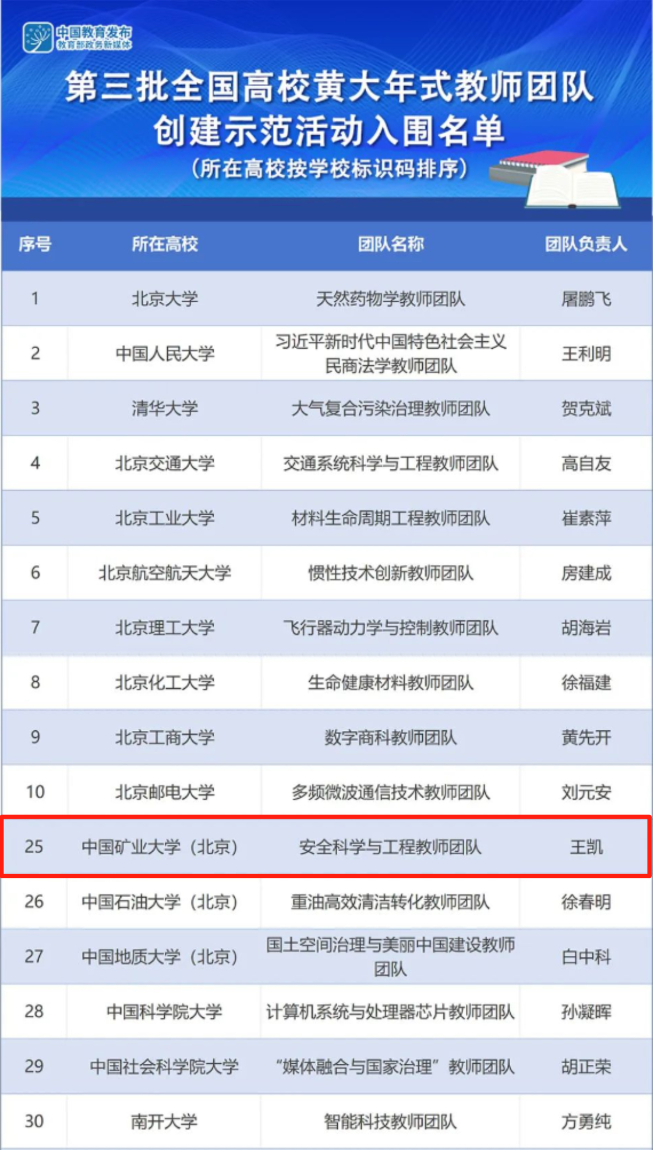 祝贺!中国矿业大学(北京)安全科学与工程教师团队入选第三批“全国高校黄大年式教师团队”