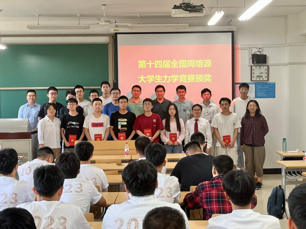 力学与土木工程学院院长左建平、副院长刘德军、力学系主任祝捷等为第十四届全国周培源大学生力学竞赛获奖学生颁奖