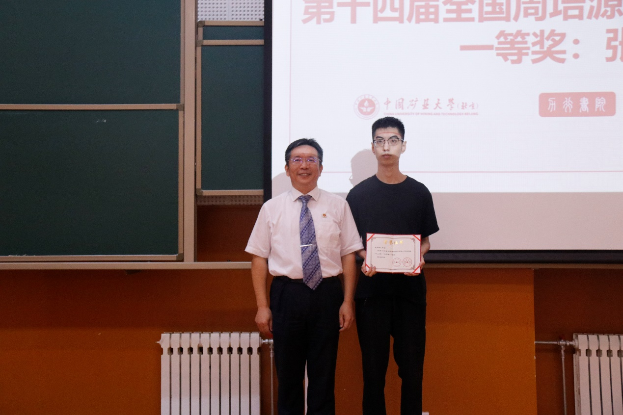 副校长刘波为获得第十四届全国周培源大学生力学竞赛一等奖的张浩然颁奖