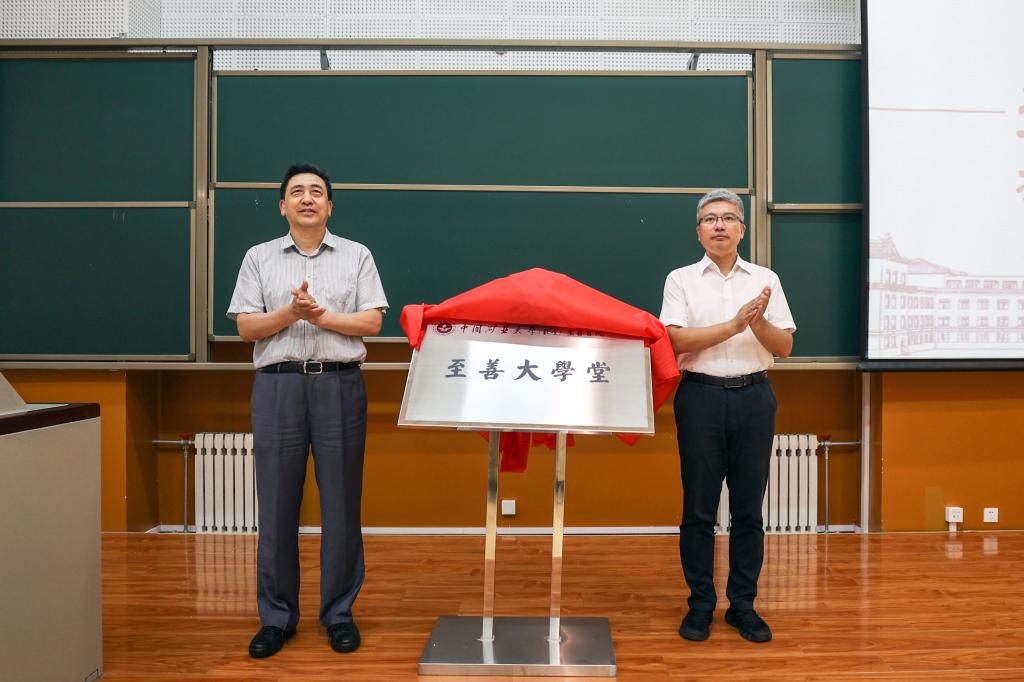 至善书院名誉院长、中国工程院院士武强与校党委副书记安宇为至善大学堂揭牌
